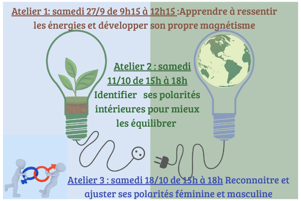 Pendant ces ateliers de 3 heures intenses énergétiquement et en contenu, Elisabeth Chiron vous partage une vision et une expérience d’un chemin de guérison holistique selon les sagesses et traditions ancestrales essénienne, amérindienne et chinoise. Ces ateliers vous aideront à restaurer l’harmonie en vous par étape et à identifier ce qui est juste pour vous et offrent un espace de partage et d ‘échanges. Un soin énergétique collectif d’1 heure 15 environ terminera ces ateliers.