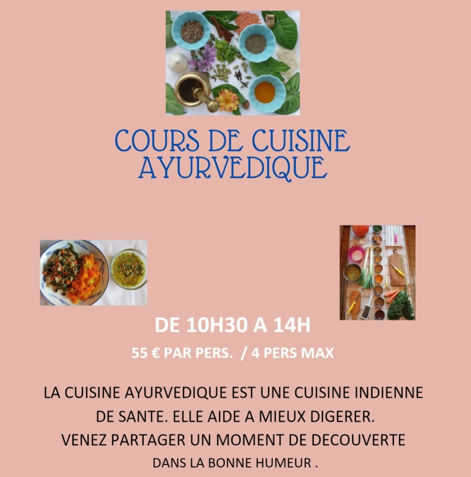 Nous commencerons avec la découverte de la cuisine Ayurvédique ainsi que des épices. Ensuite vous cuisinerez 3 plats. On finira par le partage du repas tous ensemble. Avec  un beau moment de partage tout au long du cours